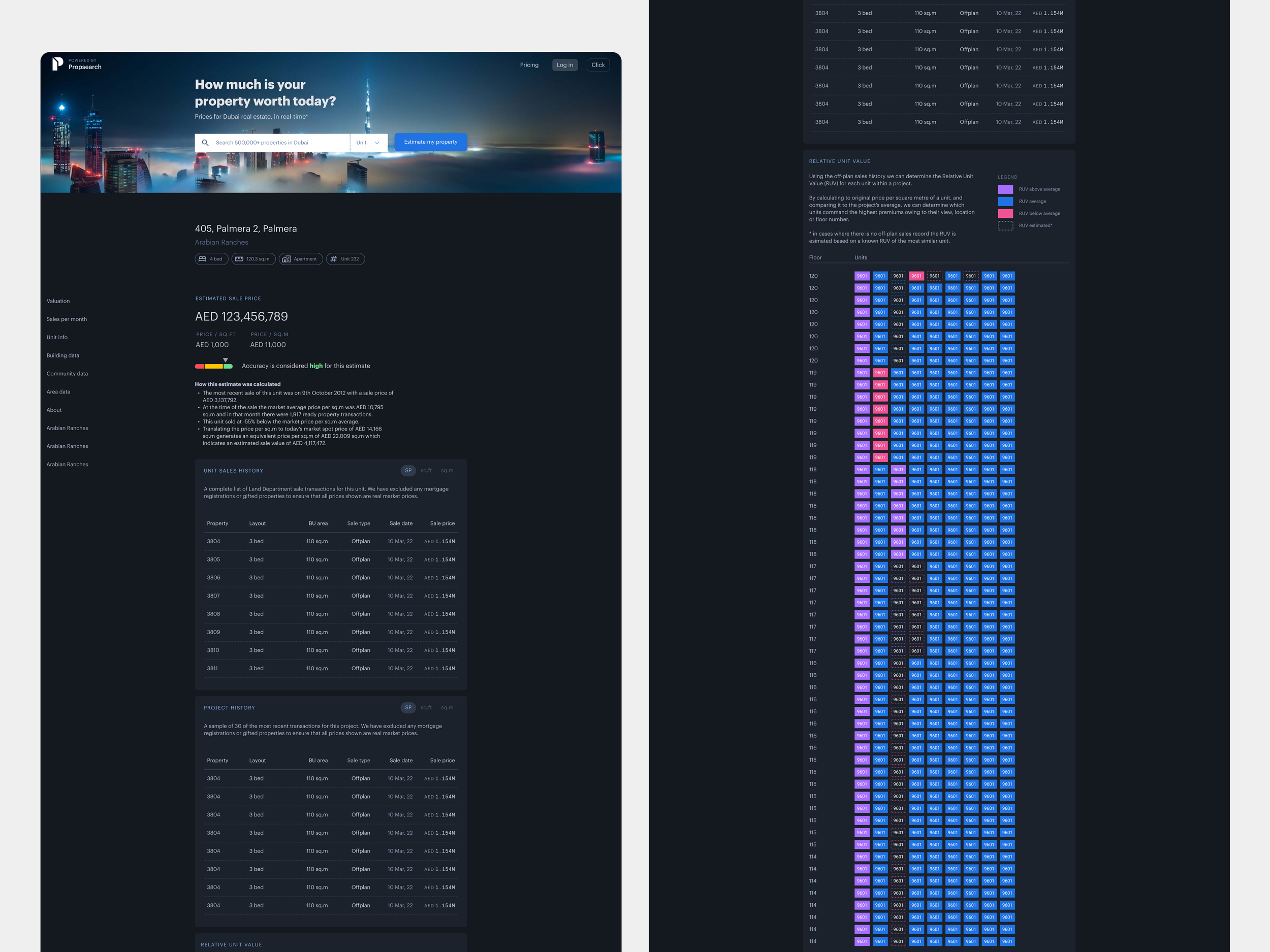 Created a single listing structure that works across rentals and sales. Improved image hierarchy, key specs, and agent details for quick comparison.Market data and area intelligence